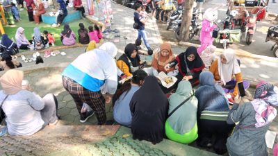 Kirab tumpeng ini diarak mengelilingi area taman oleh masyarakat yang antusias.