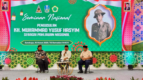 Hal itu merupakan kesimpulan seminar nasional pengusulan gelar pahlawan nasional KH Muhammad Yusuf Hasyim digelar pada Minggu (16/3/2025). Seminar yang dilaksanakan di Gedung Al-Marwah Masjid Nasional Al-Akbar tersebut dihadiri lebih dari 600 peserta.