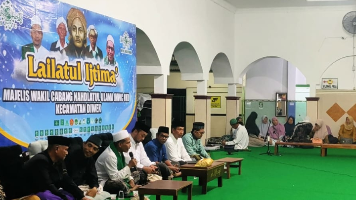 Ketua MWCNU Diwek, KH Hamdi Sholeh, mengajak para hadirin untuk istikomah mengikuti Lailatul Ijtima. “Karena NU itu bangkit, harus melakukan, tidak sekedar berbicara,” ujarnya.