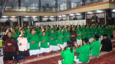 Jombang, pcnujombang.or.id – Peringatan Hari Lahir Nahdlatul Ulama (HARLAH ke 102 NU) yang digelar pada hari Senin (27/01/2025) di Masjid Agung Baitul Mukminin Jombang. Warna Hijau tampak sekali dominan, ratusan anggota ISHARI dari berbagai kecamatan turut memeriahkan acara ini melalui penampilan seni hadrah yang memukau. Bahkan, menurut informasi, lebih dari 1.000 peserta ISHARI hadir untuk menyemarakkan puncak HARLAH NU ini.
