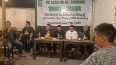 Jombang, pcnujombang.or.id – Lembaga Seniman Budayawan Muslimin Indonesia (LESBUMI) PCNU Kabupaten Jombang, menggelar tadarus budaya di kedai rootnine cafe, pada Jumat (14/3/2025) malam.