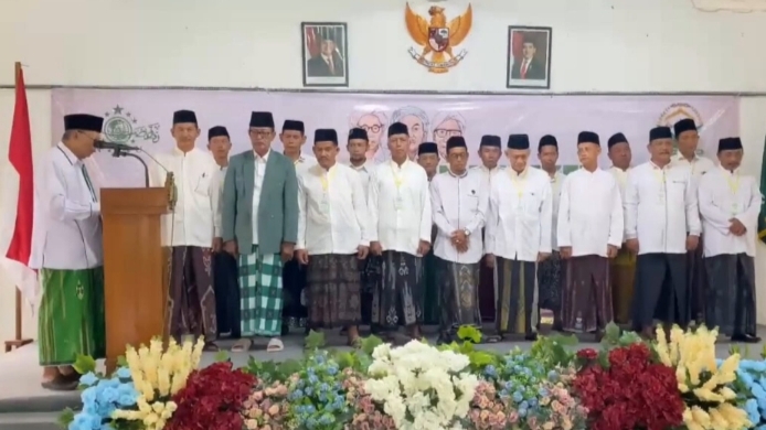 Prosesi pembacaan baiat pengurus MWC NU Megaluh berlangsung penuh khidmat dan dipimpin langsung oleh KH. Ahmad Hasan, selaku Rais Syuriah PCNU Jombang.