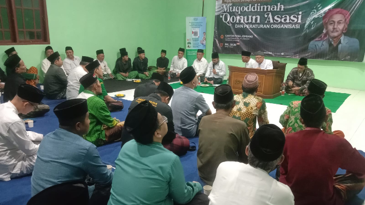 Acara yang berlangsung di Kantor PCNU Jombang ini juga bertepatan dengan momentum ngaji rutin Muqoddimah Qonun Asasi.