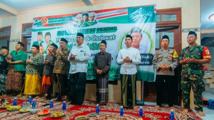 Pimpinan Anak Cabang Gerakan Pemuda (PAC GP) Ansor Kecamatan Jogoroto melaksanakan kegiatan doa bersama dan santunan anak yatim di Masjid Baitul Aziz, Desa Mayangan, Kecamatan Jogoroto, Jombang, Jumat (8/8/2025).