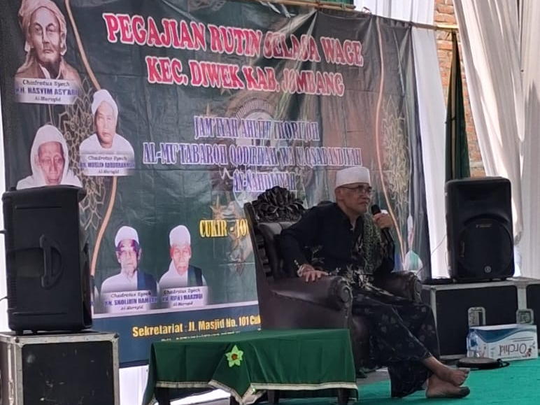 Mereka menghadiri pengajian rutin Selasa Wage yang digelar oleh Jam’iyyah Ahlith Thoriqoh Al-Mu’tabaroh Qodiriyah wa Naqsabandiyah An-Nahdliyah Pusat Cukir Jombang.
